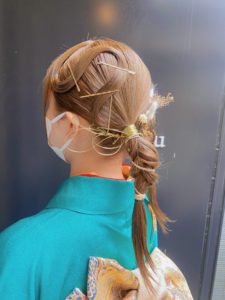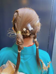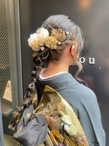 こちらのお客様も💁♀️金箔や、水引を使ってアップにさせて頂きました🧡💗☺️