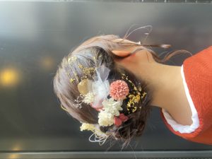 ヘアアクセも、この日まで色々と相談し、水引や、金箔でインパクトを出しました😭🌟🧡🧡