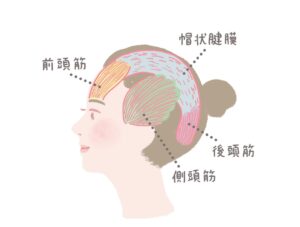 前頭筋、側頭筋、後頭筋が